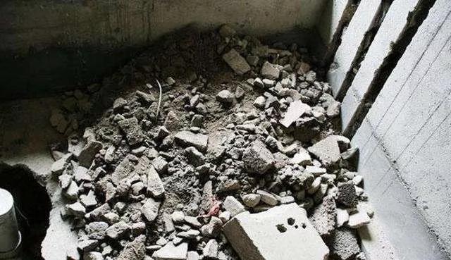有網友在重新安裝馬桶的時候發現,當初填充下沉空間的竟是自家敲牆遺留的建築垃圾。