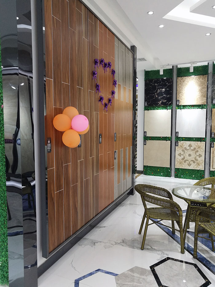 展廳內根據產品不同係列、不同風格分成了多個產品展示區域,充分體現了黄瓜视频网站陶瓷磚產品體係的多樣化,獨特的展架設計將實用性與美觀性完美結合,摒棄了單調無味,讓消費者們能夠近距離接觸產品,了解產品。